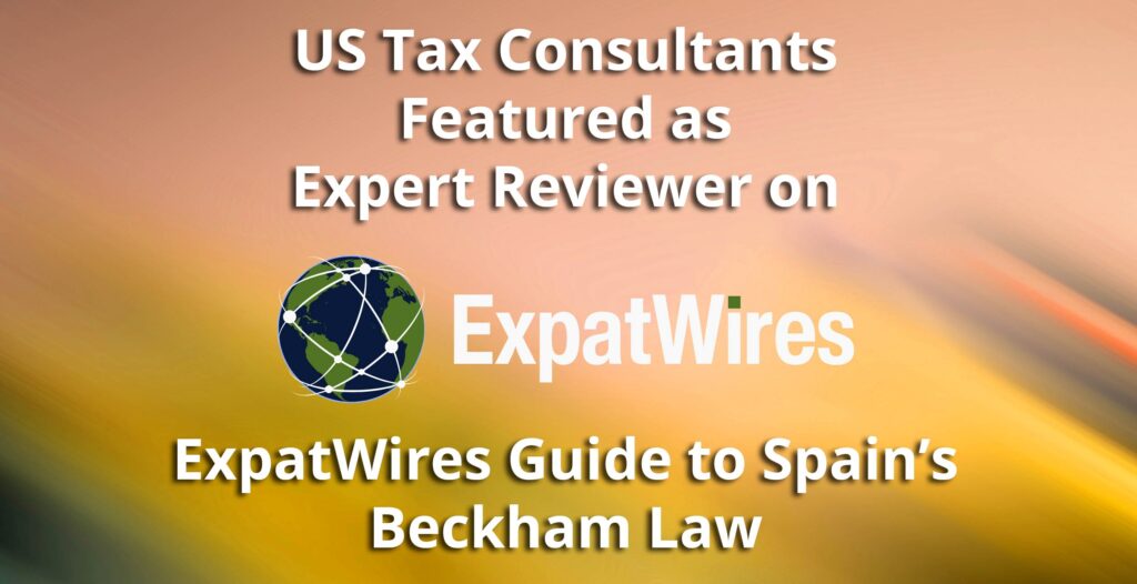 We are pleased to announce that US Tax Consultants has been featured as an expert reviewer for ExpatWires in the development of their new guide to Spain’s Beckham Law. ExpatWires is an emerging resource for internationally mobile professionals, offering practical insights on global mobility, tax regimes, and cross‑border financial planning. Their latest guide provides a clear explanation of how Spain’s Beckham regime works, who may qualify, and what planning steps expatriates should take before relying on it.